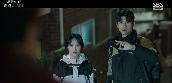 지난 30일 방송한 SBS 금토드라마 '오늘부터 인간입니다만' 5회에서 5회에서는 은호(김혜윤)와 강시열(로몬)이 또 다른 구미호를 찾기 위해 다시 산에 오르는 모습이 그려졌다. 두 사람은 그곳에서 금호를 연상케 하는 신비로운 여인(이시우)을 마주했고 그가 꼬리 여덟 개를 지닌 '팔미호'라는 사실이 밝혀지며 흥미를 더했다.