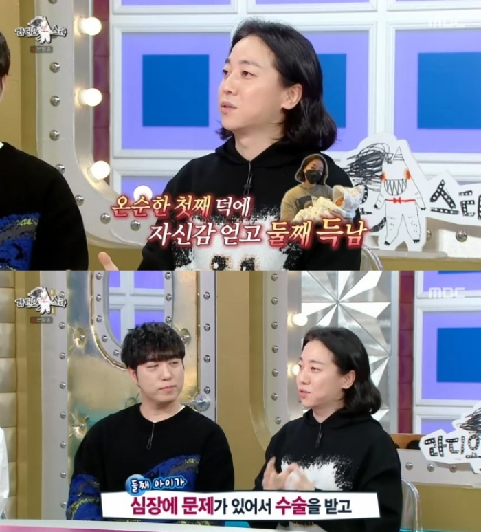 넉살은 "둘째는 심장에 문제가 있어 수술을 받고 건강하게 돌아왔다. 근데 첫째와 정반대로 너무 예민하다"고 토로했다. 그러면서 "둘째가 잠을 못 자서 저희도 매일 좀비 상태다. 육아를 교대로 하는데도 따로 자다가도 아이가 울면 깬다"고 했다.