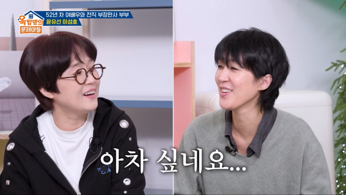 12일 방영된 KBS2 '옥탑방의 문제아들' 302회에서는 배우 윤유선과 전 판사 이성호 부부가 출연해 입담을 뽐냈다.