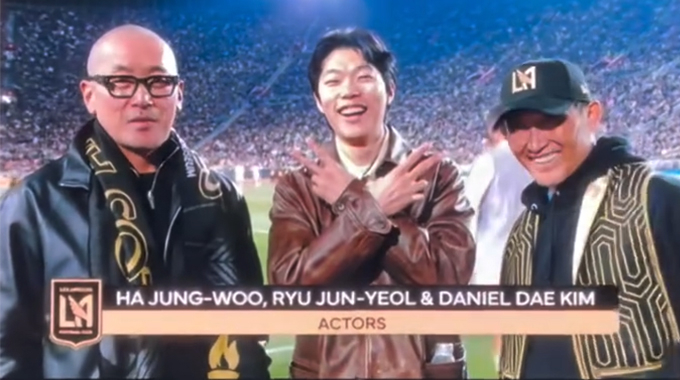 영상 속 경기장 카메라에 포착된 하정우는 빡빡 민 머리에 뿔테 안경을 끼고, 검은색 가죽 재킷을 입은 채 손 인사를 했다. 갈색 재킷을 걸친 류준열은 그의 옆에서 손가락으로 브이(V)를 만드는 등 즐거워했다. 배우 대니얼 대 킴은 모자를 가리키며 활짝 웃어 보였다.