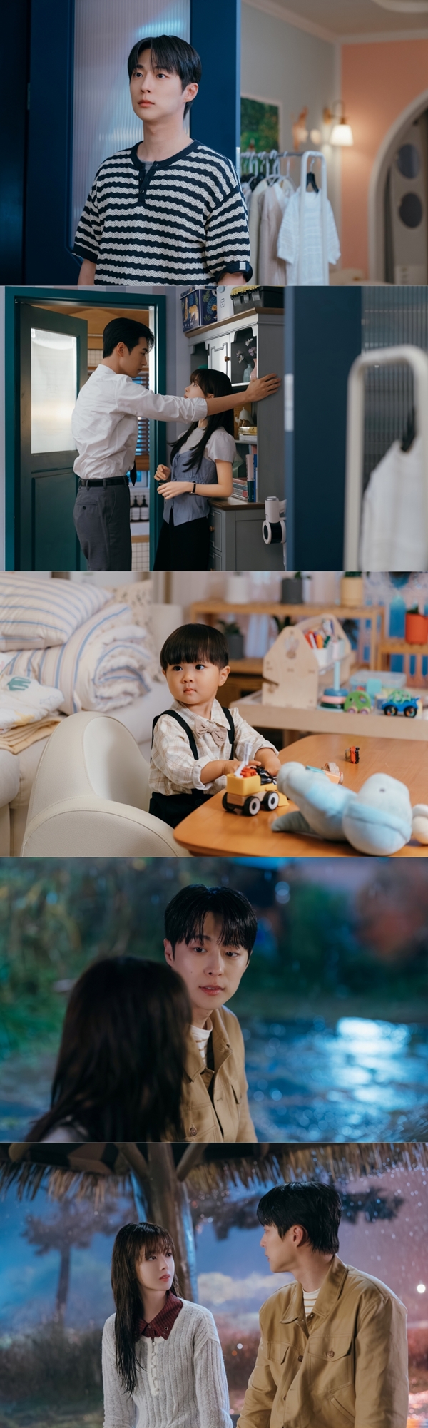 그런 가운데 공개된 사진 속 또다시 우주네를 찾은 박윤성의 방문이 흥미롭다. 우현진을 두고 닿을 듯 말 듯 가까운 거리를 유지하고 선 그의 '심쿵' 벽치기가 시선을 사로잡는다. 뒤이어 이들 사이 묘한 기류를 감지한 선태형의 불편한 표정도 눈길을 끈다. 앞서 공개된 선공개 영상에서 마치 단란한 가족이 된 듯한 선태형과 우현진, 선우주(박유호 분)의 모습과 이를 지켜보며 씁쓸한 감정을 감추지 못하는 박윤성의 모습이 공개된 바 있다. 과연 이후 박윤성의 움직임이 선태형, 우현진에게 어떤 변화를 불러올지 귀추가 주목된다.