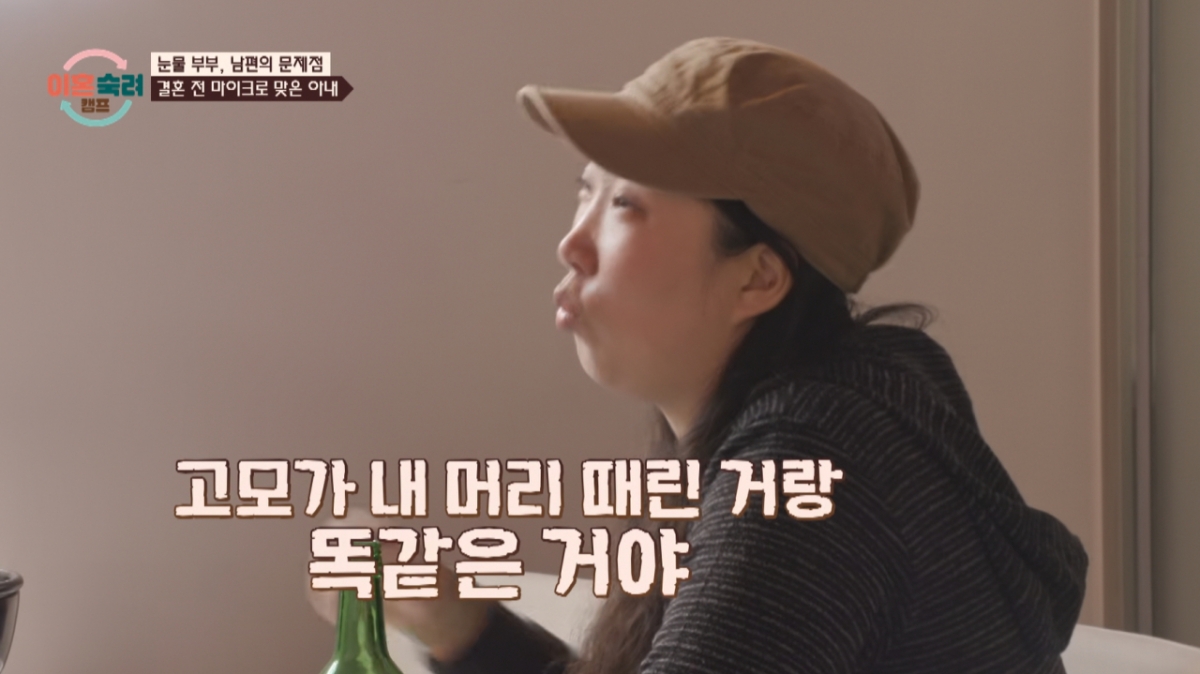 '눈물 부부' 아내가 결혼 전 시가 여행에서 시고모에게 마이크로 머리를 맞았던 사건을 꺼내며 남편의 태도에 대해 서운함을 토로했다.