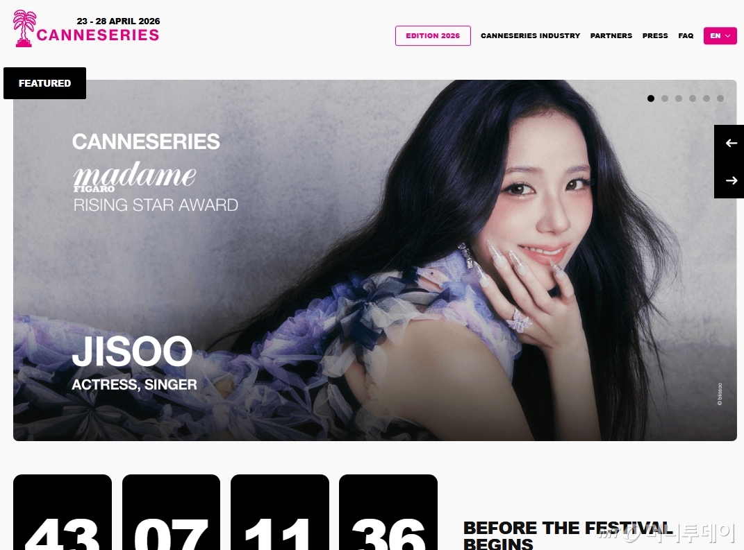 그룹 블랙핑크 멤버이자 배우 지수가 칸시리즈에서 '마담 피가로 라이징 스타상'을 수상한다.