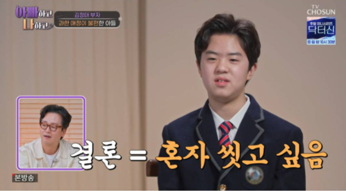배우 김정태가 중학생 아들에게 동반 샤워를 요구하다 갈등을 빚었다. 김정태는 "아들의 건강 상태를 확인하기 위해서라도 동반 샤워가 필요하다"는 입장이지만, 아들은 "혼자 씻고 싶다"며 불편함을 토로했다.