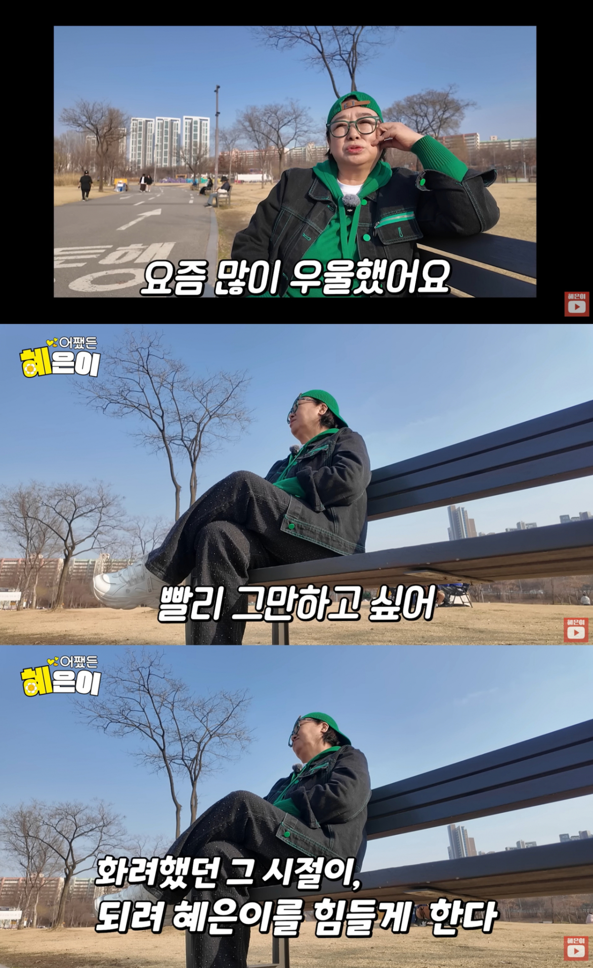 공개된 영상에서 혜은이는 오랜만에 한강공원을 찾았다. 혜은이는 "병원 가는 거 빼고는 3주 만에 나왔다"며 "제가 요즘 좀 우울하다. 좀 심할 정도여서 병원에 갔었다"고 말했다.
