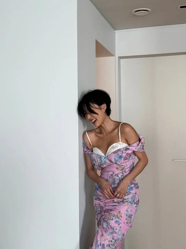 화사는 28일 자신의 인스타그램에 여러 장의 사진을 게재하며 근황을 공개했다. 공개된 사진 속 화사는 핑크 컬러 플라워 패턴 드레스를 입고 포즈를 취하고 있다. 봄 기운이 물씬 풍기는 화사한 색상에 몸에 밀착되는 디자인, 오프숄더 스타일이 독보적인 분위기를 연출했다.
