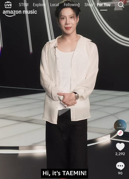 최근 SNS(소셜미디어)와 온라인 커뮤니티 등에는 아마존 뮤직 공식 계정에 올라온 태민의 영상이 공유됐다.