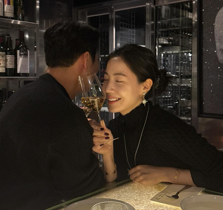 이와 함께 류화영은 예비 신랑으로 보이는 남성과 함께 찍은 사진도 게재했다. 남성의 뒷모습이 보이는 가운데, 류화영은 검정 터틀넥에 화려한 주얼리를 걸친 채 와인잔을 들고 포즈를 취한 모습이다. 류화영의 환한 미소가 눈길을 끈다.