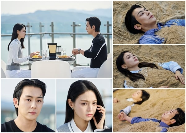 하용중과 금바라가 모래 위에 손을 꼭 맞잡은 채 나란히 누워 하늘을 보는 모습으로 묘한 떨림을 선사하는 것. 특히 두 사람이 마주 앉아 다정하게 조식을 먹는 모습이 이어지면서 앞으로 두 사람의 관계 향방이 어떻게 전개될지 기대감을 높인다.