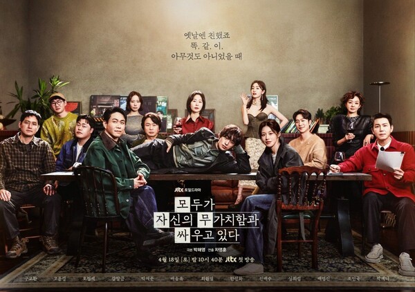 잘나가는 친구들 틈바구니에서 나 홀로 뒤처진 것 같은 박탈감. 누구나 한 번쯤 남몰래 삼켜봤을 그 지독한 열등감과 불안을 정면으로 마주하는 드라마가 마침내 베일을 벗는다. JTBC 새 토일드라마 '모두가 자신의 무가치함과 싸우고 있다'(이하 '모자무싸')가 오늘(18일) 오후 10시 40분 첫 방송으로 시청자들을 찾아간다.