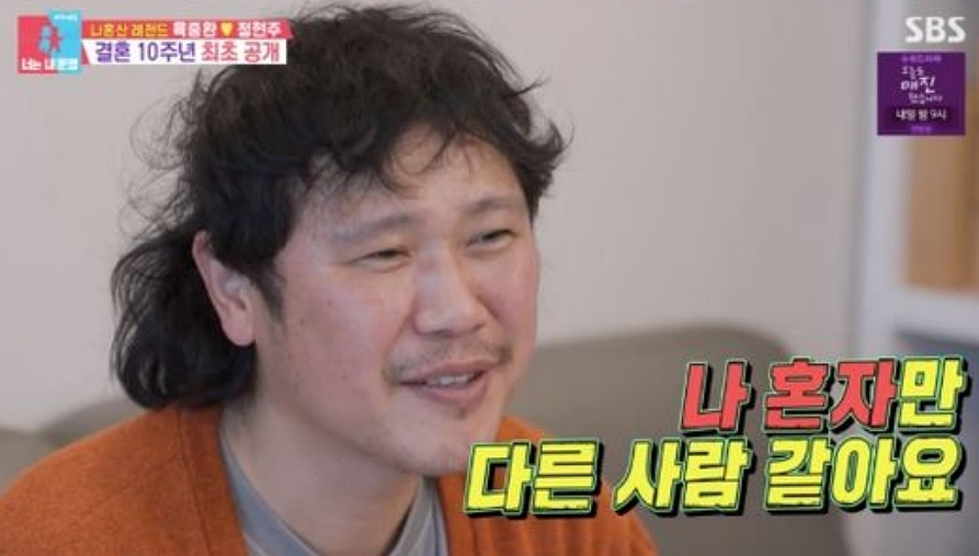 지난 21일 오후 방송된 SBS 예능프로그램 '동상이몽 2 - 너는 내 운명'에서는 가수 육중완이 아내 정현주씨와의 결혼 생활을 최초 공개했다.