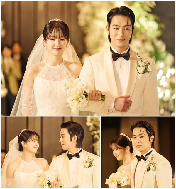 사진은 극 중 모모(김진주 뇌)와 하용중이 팔짱을 낀 채 나란히 버진로드를 걸어 결혼식에 입장하는 모습이 담겼다. 모모(김진주 뇌)는 금바라에 대한 복수 성공이 통쾌한 듯 함박웃음을 터트리는 반면 하용중은 감정을 알 수 없는 잔잔한 미소로 대비를 이룬다.