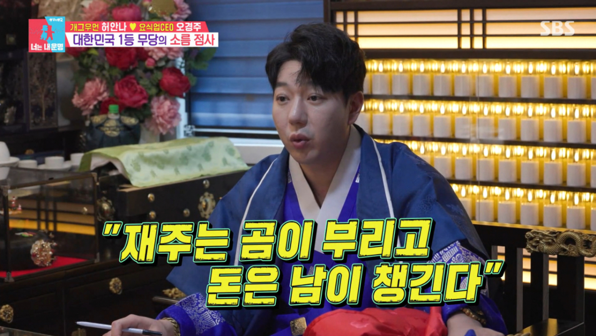 이어 윤대만은 "그분들의 공덕이 많이 내려오는 형국"이라며 "원래 오경주는 나랏밥을 먹었어야 했던 사람이다. 지금 칼을 잡고 있냐"고 물었다.