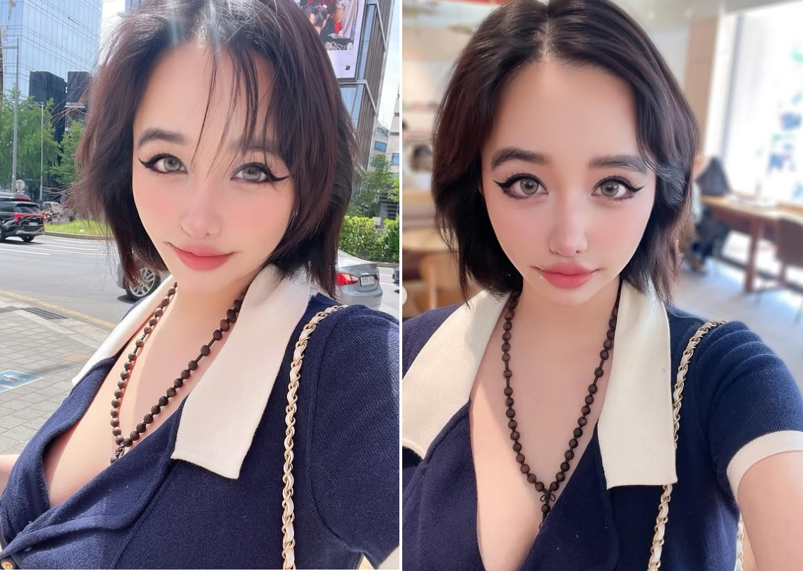 사진 속 박봄은 카페에 방문한 모습이다. 그는 가슴선이 드러날 정도로 깊게 파인 브이넥 의상을 입고 산뜻한 단발머리를 한 모습이다.
