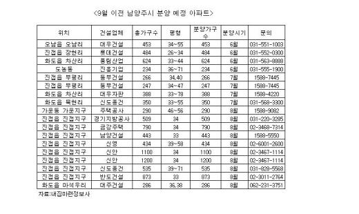 18일 업계에 따르면 오는 9월 청약가점제 시행 이전에 남양주시에서는 18곳 9500여가구가 분양될 예정이다.