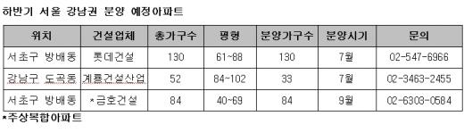 내집마련정보사는 강남권에서 상반기 분양된 아파트가 서초동 서초자이 1곳(164가구)이었으며, 하반기에도 분양 물량이 적어 강남권 아파트 공급부족 현상이 나타날 것으로 예상했다.