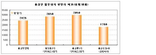 전매가 가능해 손 바뀜이 자유로운 시티파크1,2단지는 용산구 평당가(2423만원)보다 각각 427만원, 527만원 가량 높게 나타냈다. 반면, 문배동 용산이안-Ⅲ(프리미어)는 역세권과 다소 떨어져 있고 철길 및 고가도로가 있어 평당가가 상대적으로 약세를 보였다.