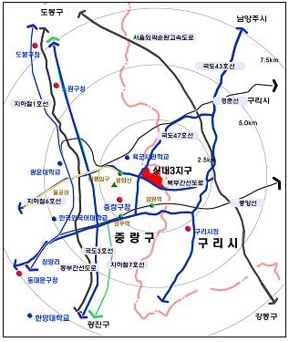 서울 신내3지구는 서울 도심으로부터 약 13㎞지점으로 구리시와 인접하고, 북부간선도로 및 국도47호선에 연접해 있다.