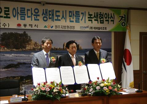 국내 최초로 이뤄진 이번 협약은 건축물 설계에서부터 에너지 절감, 환경친화적 건자재 사용, 생태적 조경 등 환경친화적으로 개발한다는 내용이 담겨있다.