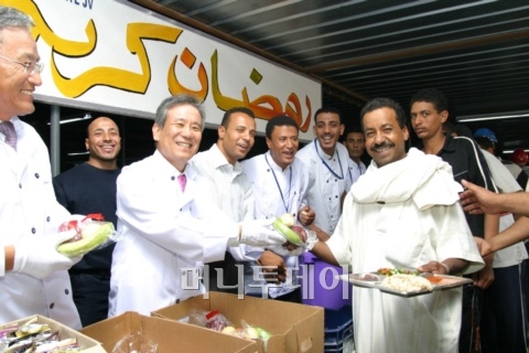 삼성물산 이상대 사장이 이슬람 최대 축제인 라마단 기간에 이집트 현장을 찾아 직접 급식에 참여해 근로자들을 격려했다.
