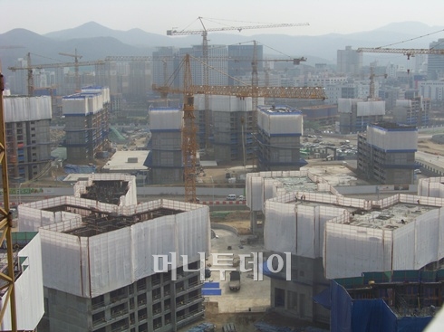동판교 26-1과 27-1블록 2공구 현장 역시 비슷한 분위기다. 현재 콘크리트 타설 공정률은 75~80%로 골조 공사가 한창인 곳이다.