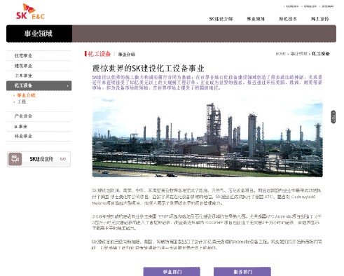 건설사들이 영어로 회사 홈페이지를 구성하는 경우는 많았지만 중국어 홈페이지를 개설한 것은 SK건설이 처음이다.