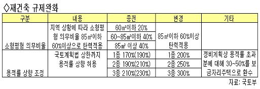 이로써 재건축 아파트의 용적률이 법정 한도인 300%까지 허용될 전망이다. 서울의 경우 현 규정상 230%까지 가능한 용적률 실질 허용 범위가 최대 70%포인트까지 높아지는 셈이다.