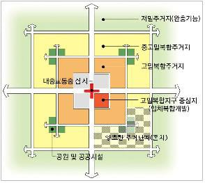 고밀복합형은 우선 지정 최소 면적을 10만㎡ 이상으로 규정, 기존 뉴타운보다 훨씬 좁은 지역을 대상으로 계획성 있게 사업을 벌일 수 있다. 현재 주거지형과 중심지형 등 두 유형의 뉴타운이 있으며 최소 면적 기준은 각각 50만㎡ 이상, 20만㎡ 이상이다.