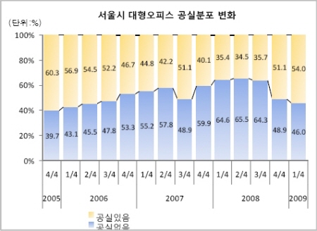 서울 도심 오피스들이 공격적인 임차인 구하기에 나선 것은 금융위기에 따른 경기불황의 여파가 크다. 알투코리아부동산투자자문에 따르면 2007년 이후 줄곧 1%대를 기록하던 서울 오피스 공실률은 지난해 말 2.0%로 오른 뒤 올들어 3월말 현재 3.1%로 올라섰다. 기업들의 구조조정에 의한 인원 감축과 비용 절감을 위한 사무실 이전 등이 원인인 것으로 분석됐다.