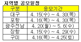 이번 공모에서는 각 사업지구별로 최우수작 1건, 우수작 4건에 대해 토공 사장 표창과 소정의 상금이 부상으로 주어진다. 응모 방법 및 자세한 내용은 한국토지공사 홈페이지 및 해당 지자체의 홈페이지 통해 알 수 있다.