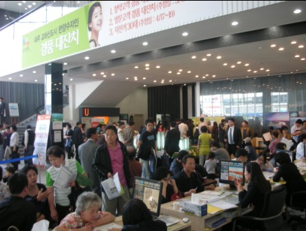 19일 부동산업계에 따르면 한양이 지난 17일 일산 탄현역 인근에 마련한 파주 교하신도시 '한양 수자인' 모델하우스에는 주말동안 1만 여명이 다녀갔다. 모델하우스 내에 마련된 상담석에서는 방문객이 20~30분 이상씩 기다리기도 했다.