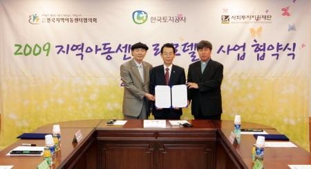 이종상 한국토지공사 사장과 오재식 사회투자지원재단 이사장, 박경양 전국지역아동센터협의회 이사장이 21일 '2009 지역아동센터 리모델링' 협약식을 가졌다. 독자들의 PICK! '무면허 음주·뺑소니' 여배우, 한국 떠났다…"단순 여행 아냐" 10대 두 딸 '매춘 조직'에 넘긴 아버지...성매매 강요당한 자매 외도 100번 이상, 아내 욕하고 때린 남편…"이유 있어 때려" 뻔뻔 "변태적 성관계 요구" 이혼 소송 건 아내…남편 "치 떨려" 분통