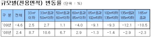 유형별로는 아파트가 5.3% 하락한 반면, 연립과 다세대는 각각 1.0%, 3.3% 올랐다. 공동주택가격이 하락한 것은 글로벌 금융위기 등위 영향으로 시장이 침체되면서 수요가 위축되고 미분양이 증가했기 때문으로 분석됐다.