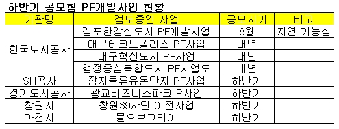 올해 하반기 공모형 프로젝트파이낸싱(PF)개발사업은 메이저 시행기관이던 한국토지공사와 대한주택공사 대신 지자체가 주도할 전망이다.