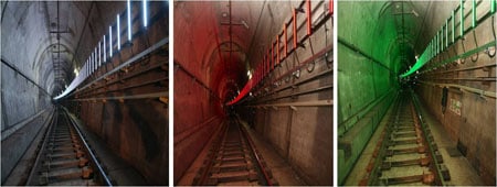 ◇얼마 들었고, 얼마나 효과 있을까=개발 및 시공사 엘이디웍스는 지난 4월부터 총 42일 동안 광화문~종로3가 터널 300m 구간에 1m 내외 간격으로 400여개의 LED 막대를 장착하는 야간 공사를 실시했다. 시공비와 인건비를 포함해 약 6억~8억원이 투입됐다.