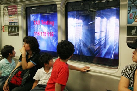 다음 달에는 5호선 여의도~여의나루, 7호선 내방~고속터미널, 어린이대공원~군자 구간에도 터널 동영상 광고가 도입된다. 9월 중에는 대구 반고개~서문시장, 부산 범내골~서면 등 지방으로도 확대할 계획이다.