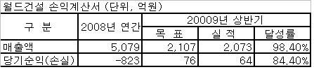 자산매각 외에 인력 구조조정과 임금삭감, 비용절감 등의 자구책도 진행 중이다. 지난해 410여명이던 인력은 올 7월 말 현재 250여명으로 약 38% 줄었다. 임직원의 임금도 지난해보다 35% 정도 삭감했다. 채권단 관계자는 "다른 건설사와 비교하면 월드건설의 자구노력은 잘 진행되고 있는 편"이라며 "최근 분양경기가 일부 살아나고 있는 상황도 긍정적"이라고 말했다.