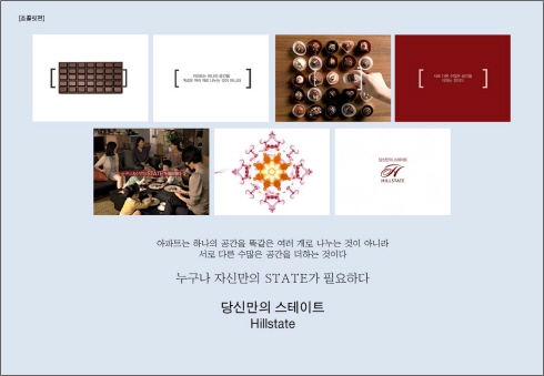"아파트는 하나의 공간을 똑같은 여러 개로 나누는 것이 아니라 서로 다른 수많이 합쳐지는 것"이라는 힐스테이트의 철학이 담겨 있다.