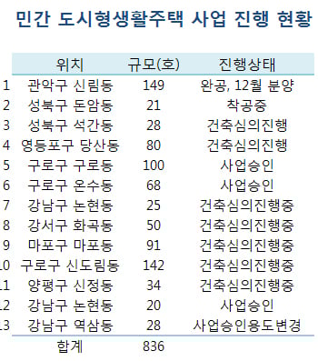 시에 따르면 현재 민간사업자가 도시형생활주택을 짓기로 한 곳은 총 13곳. 내년 민간에서 도시형생활주택으로 공급되는 물량은 840가구에 그친다. 공공과 합쳐도 약 1099가구로 연간 공급돼야할 2만가구에 비하면 5%에 불과한 수준이다.