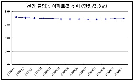 불당동의 B공인 관계자는 "천안의 8학군이라 불리며 학군과 입지가 가장 좋다는 평가를 받는 불당동의 주요 아파트 들이 3.3㎡당 700만원 후반에 시세가 형성돼 있다"며 "여기보다 입지가 떨어진 두정동, 백석동, 용곡동 등의 신규 아파트들의 분양가가 비슷하거나 높다보니 천안 수요자들이 찾지 않고 있는 것"이라고 분석했다.