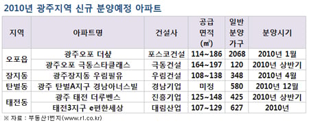 10일 부동산정보업체 부동산1번지에 따르면 내년 광주시에 총 4132가구의 아파트가 분양된다. 2004년 이후로 최대치다.