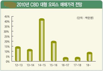 도심권역(CBD) 연면적 6만6000㎡ 이상 대형오피스의 매매가격 전망도 상승(38%) 답변이 하락(20%) 답변보다 많았고 예상 매매가격은 올해 거래된 극동빌딩 거래가격 3.3㎡당 1362만원보다 소폭 오른 1400만~1500만원을 제시했다.