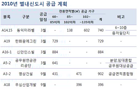 600가구는 하반기 중 사전예약을 거치지 않고 바로 본 청약을 받는다. 나머지 2551가구는 30년짜리 국민임대주택 등으로 2011년 이후 공급될 예정이다.