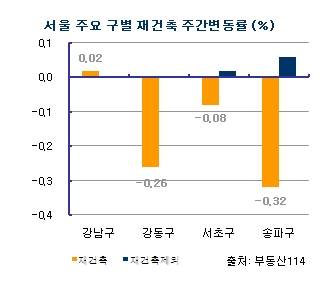 [시황-매매]0.01% 떨어져, 재건축 아파트값도 3주 연속 하락