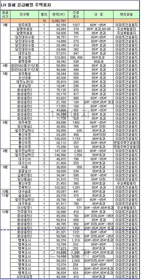 한국토지주택공사(LH)는 올해 전국 80개 지구에 5602필지 총 1000만㎡에 달하는 조성용지를 공급한다고 24일 밝혔다.