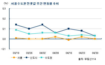 부동산114 관계자는 "전세시장은 5월에는 다소 한산할 전망"이라며 "실수요자라면 2분기 비수기에 거래를 고려하는 것도 방법일 수 있다"고 조언했다.