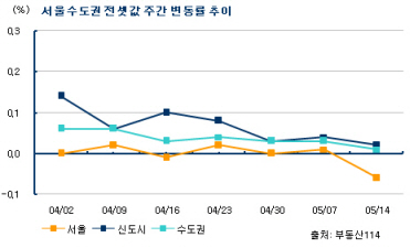 반면 성동(0.12%) 구로(0.05%) 동작(0.04%) 중(0.04%) 동대문(0.04%) 등은 소폭 올랐다. 성동구는 마장동 세림, 응봉동 대림1·2차 등이 상승했다.