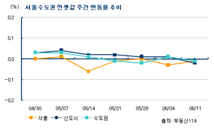 서울을 포함한 수도권 전체 전세시장이 약보합세를 보였다. 하지만 강남 등 학군수요가 몰리는 지역은 여름방학을 앞두고 소폭 상승했다.