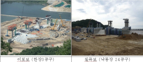 국토해양부 4대강살리기 추진본부는 16개 보(洑) 공정률이 36%(계획 32%)로 원활하게 추진되고 있고 한강 이포보 등 6개 보는 이달부터 수문 설치에 착수한다고 18일 밝혔다.
