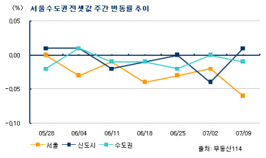 9일 부동산정보업체 부동산114에 따르면 이번주(5~9일) 수도권 전세시장은 서울(-0.06%)과 경기·인천(-0.01%) 등이 소폭 하락했고 신도시는 0.01% 올랐다. 서울은 자치구별로 성동(0.09%) 양천(0.09%) 관악(0.07%) 구로(0.07%) 중랑(0.05%) 등이 올랐다.